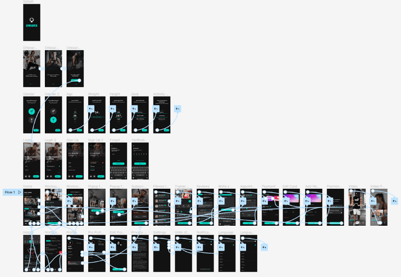 The low-fidelity prototype connected the primary user flow of building and booking PT and fitness classes. The prototype could be used in a usability study with user.